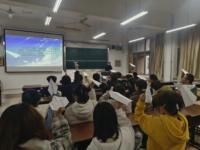 活动伊始,“暖心留言”环节为现场营造了温馨的氛围。参与者在便利贴上写下鼓励、祝福或感谢的话语,小小的便签承载着满满的善意,汇聚成一面温暖的留言墙。留言墙便贴满了密密麻麻的便签,红橙黄绿的色彩交织成一片温暖的海洋。同学们在书写与分享中传递着人与人之间的温情,让关爱在交流中悄然传递,为整个活动奠定了温暖的基调。此次“暖心留言”环节,打破了传统政策宣讲的单向输出模式,让学生成为善意传递的主体。学院权益部提前筹备,配备充足的便利贴、马克笔。留言墙不仅是情感交流的平台,更让受助学生感受到集体的关怀,同时培养其他学生的共情能力与社会责任感。“流浪纸飞机”环节中,同学们围坐在一起,认真学习纸飞机的折叠方法。将对资助的理解、对未来的期许以及对他人的善意寄托其中。一张张普通的A4纸,在指尖翻飞间变成承载希望的“使者”。大家在飞机机翼上写下对受助同学的期许,有的写下“愿你乘风破浪,前程似锦”,有的标注“助学贷款助我圆梦,我用努力回报社会”,还有的附上自己的联系方式,承诺提供学习上的帮助。这些满载希望的纸飞机被一一放飞,象征着资助的力量跨越障碍,为需要帮助的人送去切实的温暖与成长的可能,让抽象的资助精神转化为具象的行动表达。活动结束后,学院将收集到的纸飞机进行分类整理。同时,学院以此次活动为契机,再次梳理了国家奖学金、国家励志奖学金、助学贷款等资助政策,通过纸飞机附带的“政策小贴士”,让学生在感受善意的同时,明晰申请流程与条件,确保资助政策精准落地。