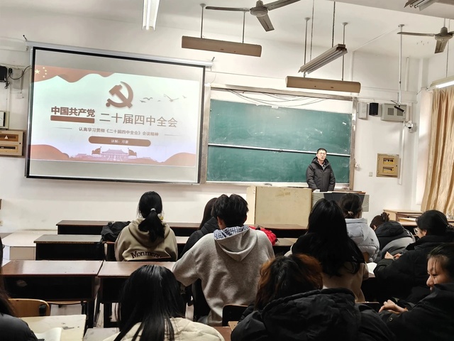 学院团总支高度重视,将学习贯彻全会精神作为当前重大政治任务,迅速构建团委统筹、支部落实、师生联动的学习体系。学院团委负责人邓豪带头讲授专题团课,围绕十五五时期发展目标、发展新质生产力科技自立自强等核心部署,结合学院学科特色系统解读,用专业发展对接国家战略的逻辑,让宏大理论贴近师生实际。