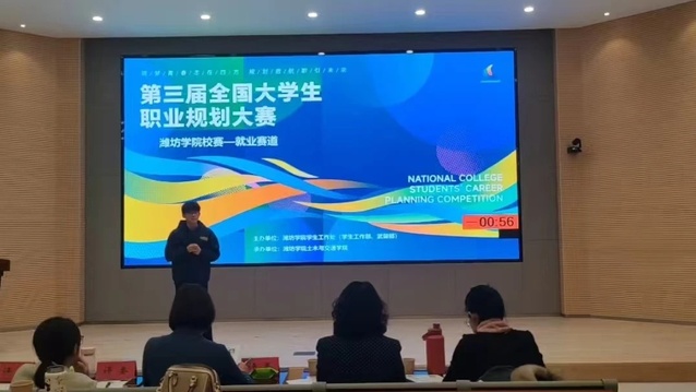 歌尔科技产业学院高度重视学生职业发展指导,赛前组建专业教师指导团队,围绕职业规划逻辑梳理、行业趋势分析、方案优化完善等方面开展专项辅导,助力参赛学子精准锚定职业方向。2023级电子科学与技术专业学生史健宾积极备赛,深入调研电子信息领域产业发展动态,结合自身专业基础与兴趣特长,构建科学完整的职业发展路径,明确短期学业提升目标与长期职业成长规划,其规划方案兼具专业性与实操性,答辩环节沉稳清晰、逻辑严谨,最终在校赛就业赛道脱颖而出斩获银奖。