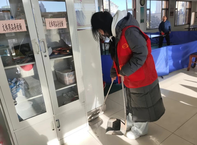 在社区活动室里,志愿者们手持扫帚、簸箕,仔细清扫地面杂物,擦拭文体用品存放柜,将各类物品整理归置到位,为居民营造出整洁舒适的活动环境。室外广场上,志愿者们则耐心协助老年居民完成信息登记、设备操作等流程,面对居民的疑问,他们一一细致解答,用热情的服务缓解了老人的焦虑,现场秩序井然。此次基层服务实践,让歌尔科技产业学院的学子们深刻体会到“奉献、友爱、互助、进步”的志愿精神内涵。他们不仅用实干为基层群众解决了实际问题,更在服务中拉近了与群众的距离,增强了自身的社会责任感与实践能力。