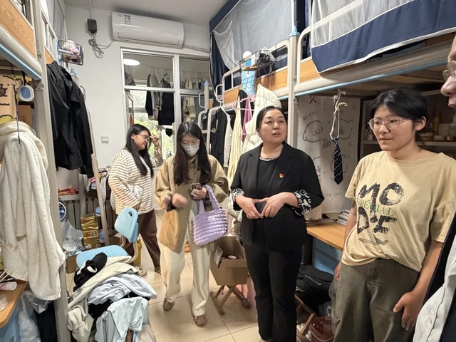 检查过程中,检查组逐层逐间走访宿舍,重点查看宿舍整体环境卫生、物品摆放、被褥叠放、地面保洁、阳台公共区域卫生等内务情况,同时细致排查私拉电线、违规电器、易燃易爆物品等安全隐患。高连宏与同学们亲切交流,详细询问大家的住宿感受、日常生活困难以及适应宿舍集体生活情况,耐心讲解宿舍内务标准、消防安全常识和宿舍文明行为规范,引导同学们自觉养成良好生活作息和卫生习惯,互帮互助、和睦相处,共同营造整洁有序、团结友爱的宿舍氛围。